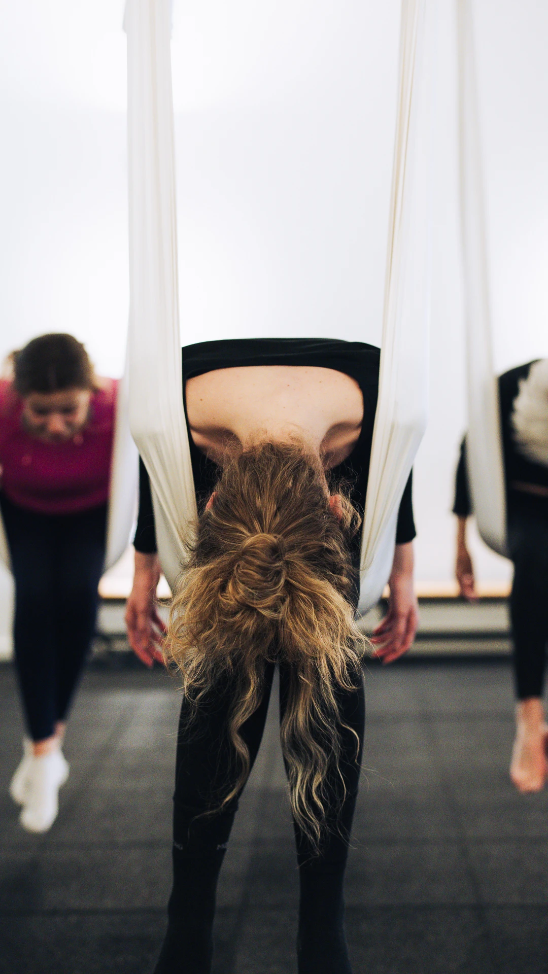 Discover the magic of aerial yoga! In this unique class, you’ll combine classic yoga, Pilates, and light acrobatics, all supported by a hanging silk hammock.Safely: